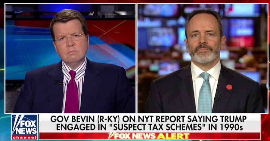 On Fox News, Governor Matt Bevin reacted to a bombshell New York Times report that the Trump family engaged in “outright fraud” and other “dubious tax schemes” by calling the journalism “a black eye on America” and not the tax cheat in the Oval Office