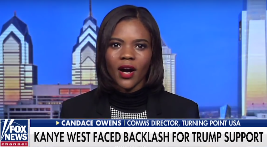 Move over police officers, firefighters and service men and women: Fox News guest Candace Owens thinks Kanye West’s publicity stunt at the close of Saturday Night Live – in which he donned a MAGA hat, whined about being “bullied” over it and called for the repeal of the 13th Amendment (which abolished slavery) made him “one of the bravest men in America.”