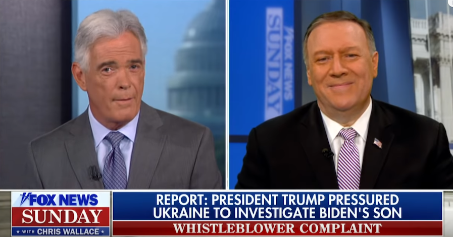 On Fox News Sunday, Secretary of State Mike Pompeo dodged and deflected when asked about Donald Trump’s conversations with the president of Ukraine in which Trump reportedly pressured him to dig up dirt on Joe Biden’s son, possibly in return for the release of U.S. aid.