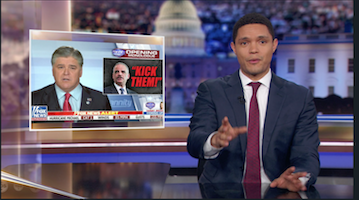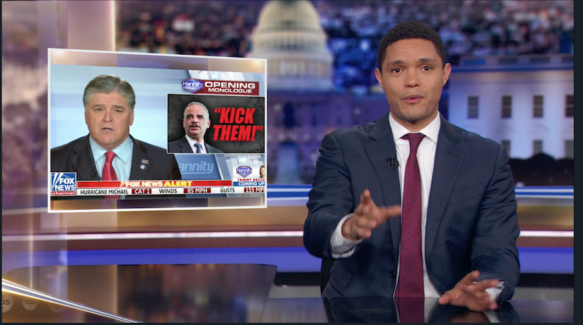 Have some Friday night laughs at the expense of Mitch McConnell, Sean Hannity, Brett Kavanaugh, et al., below, from the October 11, 2018 The Daily Show with Trevor Noah.