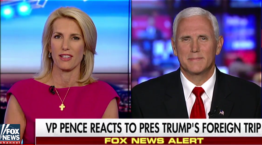 Vice President Mike Pence slathered lipstick all over the pig of Donald Trump’s anti-American, pro-Russia comments during his press conference in Poland Thursday. But not even Fox host Laura Ingraham seemed fooled.