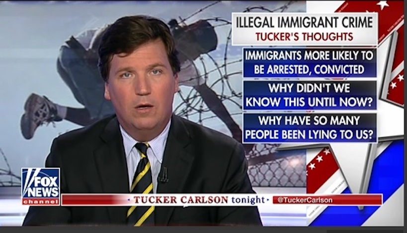 Who better to advance Fox’s jingoistic hate mongering directed towards immigrants than white-privilege poster boy, Tucker Carlson, who recently used misleading statistics to inform us that immigrants are a bunch of scary criminals who need to stay the hell out of the USA?
