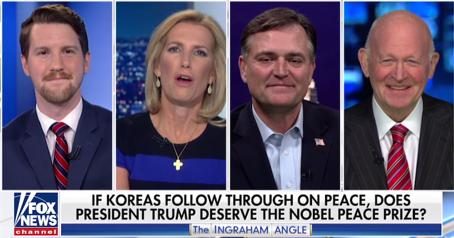 Watch the peace prize propaganda below, from the April 27, 2018 The Ingraham Angle.